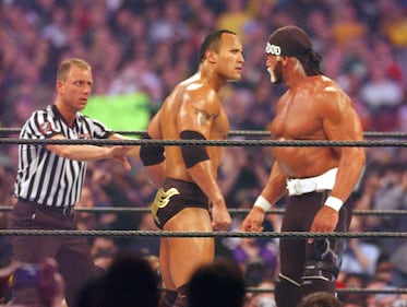 Hulk Hogan and The Rock at Wrestlemania X8 (Photo by George Pimentel/WireImage)