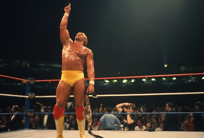 Hulk Hogan taking off his belt during a match against Karl Malone at Cox Arena in San Diego, Calif. on July 12, 1998 (Photo by Robert Beck /Sports Illustrated via Getty Images)