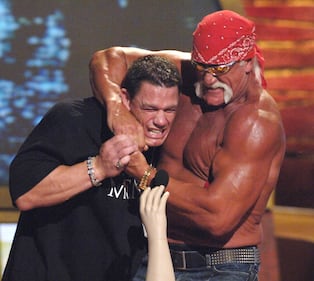 John Cena and Hulk Hogan during 2005 Teen Choice Awards - Show at Gibson Amphitheater in Universal City, California, United States. (Photo by Jeff Kravitz/FilmMagic, Inc)