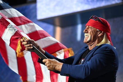 Hulk Hogan speaks during the final night of the Republican National Convention in Milwaukee on Thursday, July 18, 2024. (Bill Clark/CQ-Roll Call, Inc via Getty Images/File Photo)