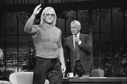 Hulk Hogan during an interview with host Johnny Carson on June 15, 1982 -- (Photo by: Jospeh Del Valle/NBCU Photo Bank/NBCUniversal via Getty Images via Getty Images)