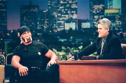 Professional wrestler Hulk Hogan during an interview with host Jay Leno on November 26, 1998 -- (Photo by: Margaret Norton/NBCU Photo Bank/NBCUniversal via Getty Images via Getty Images)